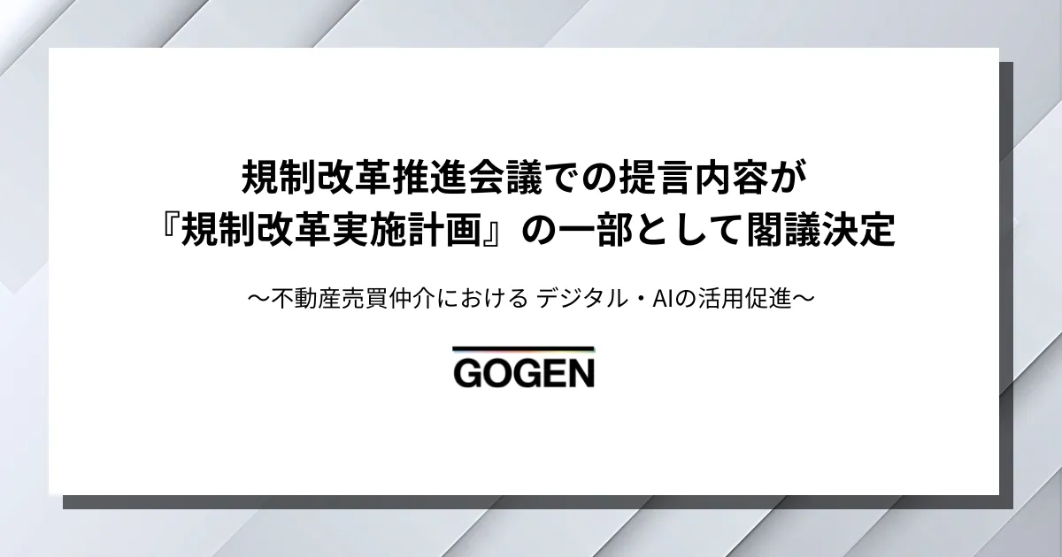 2025年に向けた不動産業界の革新が、GOGEN株式会社による「不動産売買仲介におけるデジタル・AI活用」という提言を通じて始まります。これは、規制改革推進会議での審議から生まれたもので、2025年6月13日に閣議決定された『規制改革実施計画』に盛り込まれました。