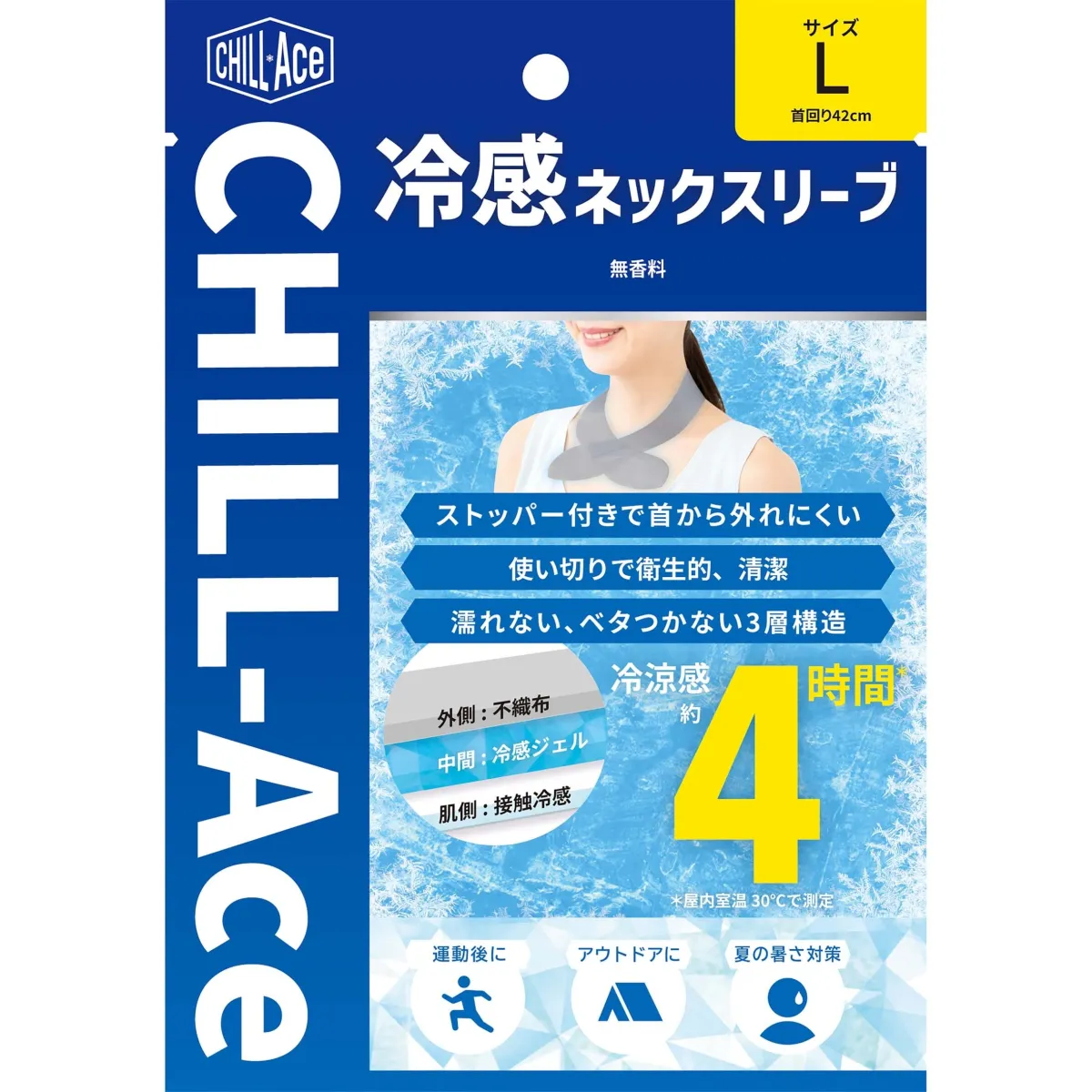 「CHILL-Ace」は意匠登録申請中で、価格は1枚入りで200円、3枚入り550円、6枚入り990円(税抜)。サイズはM(50cm)とL(58cm)があり、カラーは無香料のグレーのみとなっています。