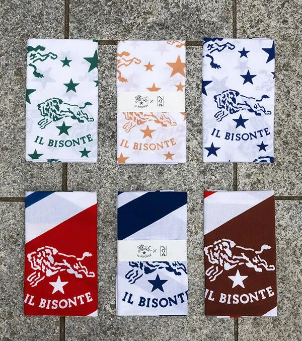 てぬぐいには、ランダムに配されたバイソンロゴとイル ビゾンテを象徴するオーセンティックな模様が施されています。鮮やかな色彩が暮らしの中にささやかな豊かさを引き出し、一見シンプルに見えますが、そのデザインには深い意味が込められています。