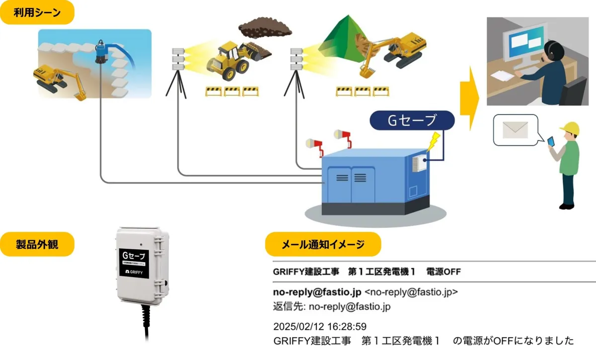 株式会社GRIFFYは、2025年3月より、建設現場で発電機の稼働状況を効率的に監視する新サービス「Gセーブ」の提供を開始すると発表しました。このシステムは、発電機の電源のオン/オフを遠隔通知し、稼働状況をリアルタイムで把握できることから、環境負荷の軽減にも寄与することが期待されています。