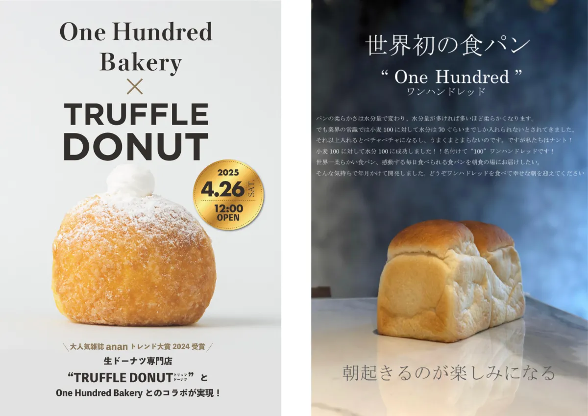 2025年4月26日、愛知県大府市の『One Hundred Bakery』と生ドーナツ専門店『TRUFFLE DONUT』が手を組み、期待のコラボレーションメニューがついにスタートします。ドーナツと食パンの新たな融合をお見逃しなく!