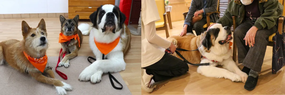 「ドクタードッグ」プログラムは、動物介在活動の一環として、特に高齢者施設や学校、養護施設などにボランティア訪問を行う犬たちを育成し、トレーニングを施した後、認定試験を通して彼らを資格のある活動犬として活用します。こうした犬たちは、訪問先で心の癒しを提供し、利用者に対して情操教育を行う役割を担っています。
