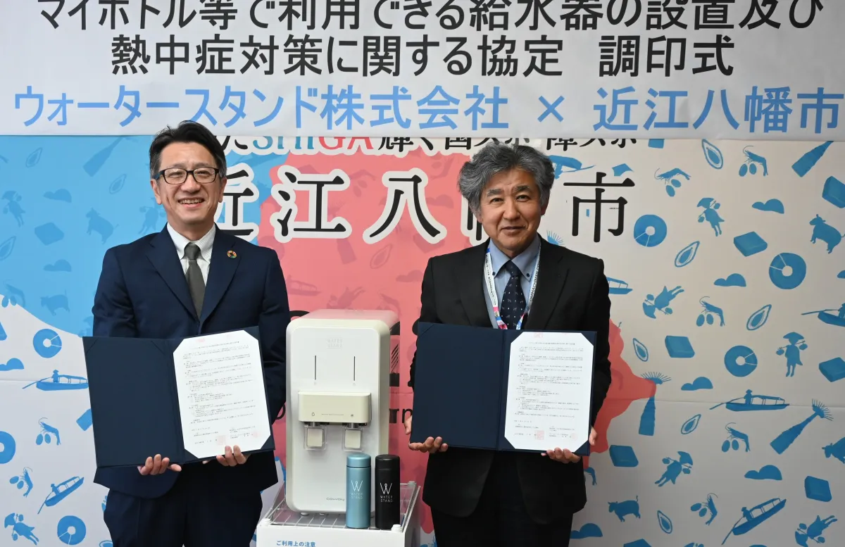 2025年4月24日、滋賀県近江八幡市とウォータースタンド株式会社は、「マイボトル等で利用できる給水器の設置及び熱中症対策に関する協定」を結びました。この協定の目的は、マイボトルを利用した給水器の設置を通じて、使い捨てプラスチックごみの削減と熱中症対策の強化を図ることです。近江八幡市長の小西 理氏とウォータースタンドの取締役関西第二支社長、丸山清治氏が協力し、公共施設などに給水器を設置することで、環境意識の向上と行動の変容を目指します。
