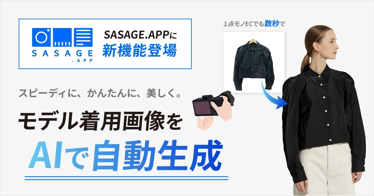 株式会社キャスターとそのグループ会社であるグラムス株式会社は、2025年6月20日に新しい機能を「SASAGE.APP」に追加しました。この新機能は、商品画像をもとにAIが自動でモデル着用イメージを生成するものであり、特に1点モノのリユース商材やD2Cブランドにとっては、従来のモデル撮影を不要としつつ、コストや制作工数を大幅に削減することが可能です。