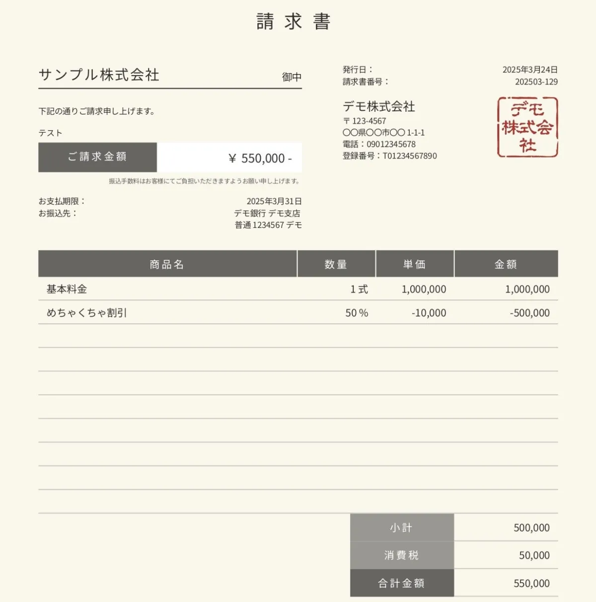 この新サービスは、そんな悩みを解消するべく設計されています。シンプルで美しいユーザーインターフェースを提供し、操作も非常に簡単です。初めて使う方でも、数分以内に請求書を完成させることができます。「請求書作成は面倒」という固定観念を覆します。