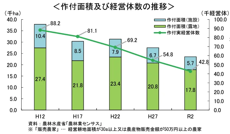 日本の花き業界は、深刻な生産農家の減少に直面しています。1995年には48千haの作付け面積がありましたが、2021年にはその数が24千haにまで落ち込むなど、生産者が次々と廃業する状況です。これは経済的魅力が不足しているため、後継者が現れず、産業全体が衰退しているためです。