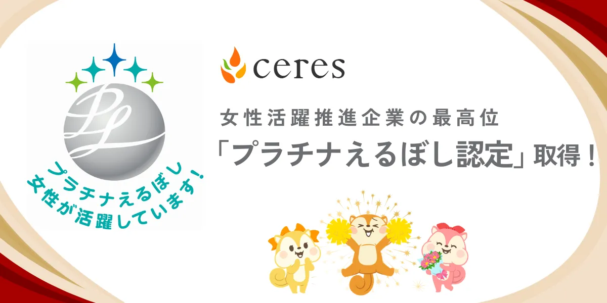 セレスは昨年20周年を迎えた際に、従業員一人ひとりを“開花すべき価値”と考え、その成果を組織全体に還元する人的資本経営をESG戦略として掲げています。この取り組みの一環として、女性の活躍促進に向けた環境整備を強化してきました。その結果、2025年12月にはえるぼし認定の最高位である3つ星を取得し、2026年2月には特に優れた実施状況として「プラチナえるぼし認定」を受け取ることとなりました。