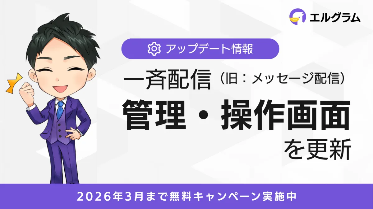新しいエルグラムのインターフェースは、初心者でも使いやすさを重視して設計されています。特別な知識が無くても、流れに沿って簡単に一斉配信の準備ができます。また、配信内容や対象ユーザーの情報を画面上で確認しやすくなったため、運用担当者の作業負担が軽減されます。これにより、日常業務の中での一斉配信の活用が一段と進むことでしょう。