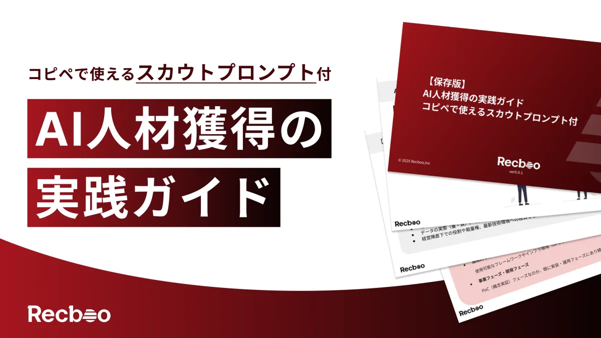 そんな中、株式会社ノックラーンが提供する中途採用支援サービス「Recboo」が、新たにホワイトペーパー「【保存版】AI人材獲得の実践ガイド|コピペで使えるスカウトプロンプト付」を公開しました。この資料は、AI人材採用に必要な具体的なノウハウを一冊にまとめたもので、実務に直結する内容が満載です。