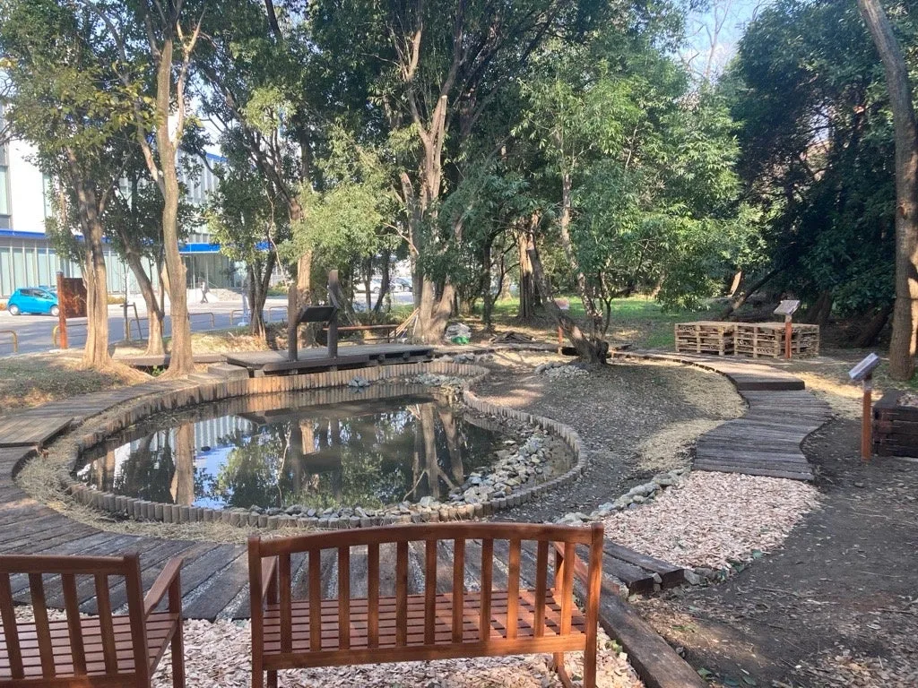 池の周囲には四季折々の自然を楽しむ散策路が整備され、従業員が気軽に自然とのふれあいを感じられるようになりました。この遊歩道は、散策を楽しむだけでなく、心を落ち着かせる効果も期待されています。