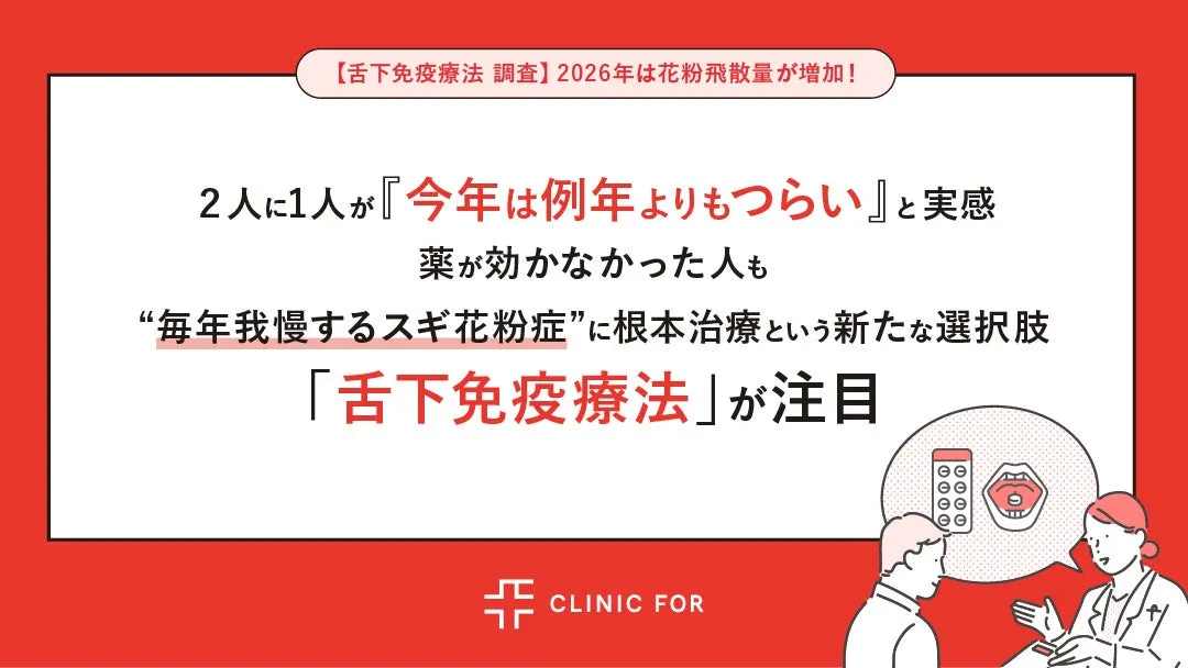 2026年の受診者数も前年同期比で約60%増加し、スギ花粉症の患者が治療を求める傾向が顕著になっています。これに伴い、従来の対症療法に加えて、根本的な治療法としての舌下免疫療法への関心が高まっています。
