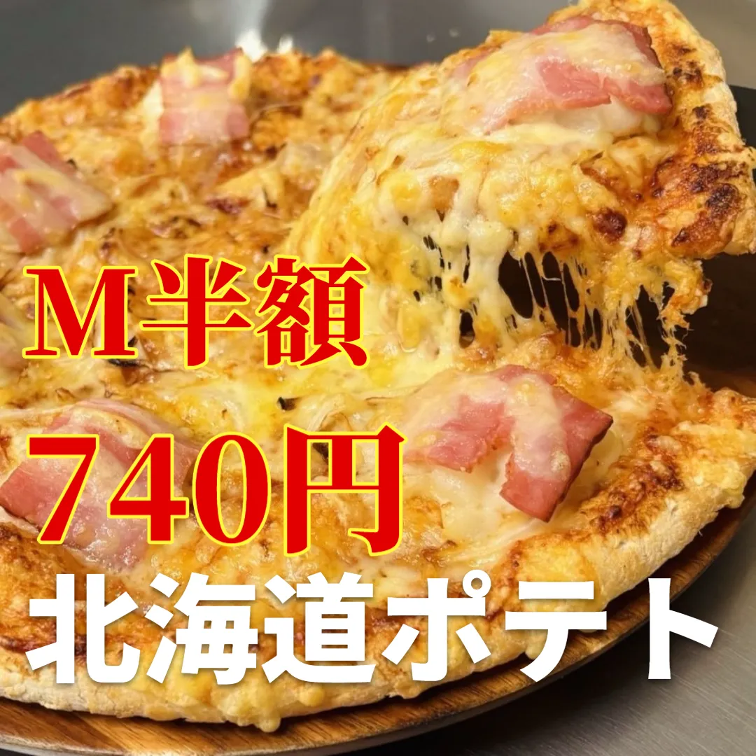 また、もう一つのおすすめは「北海道ポテト」です。こちらもMサイズが740円、Lサイズが1,480円とお得な値段になっています。これらのピザは、トマトやベーコン、バジルなどの素材が絶妙に絡み合い、一口食べればその美味しさに驚くことでしょう。