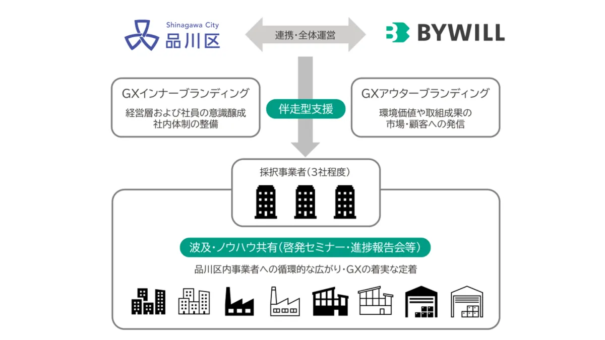 株式会社バイウィルは、東京都品川区が進める「GX・脱炭素経営推進支援事業業務委託」を受託しました。このプロジェクトは、環境価値を活用し、経済循環を促進することを目的としています。バイウィルは、品川区内の中小企業が持続的にグリーントランスフォーメーション(GX)を推し進めることをサポートします。