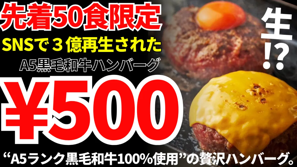 A5黒毛和牛ハンバーグが驚きの500円で登場