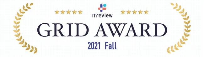 ITreview Grid Awardは、ビジネス向けソフトウェアやクラウドサービスのユーザーから集めたレビューに基づく評価システムです。このシステムでは、顧客満足度と製品の認知度を四象限のマップで可視化し、各部門の受賞者を選定します。2021年9月までのレビューに基づき、「Leader」として受賞した製品は、非常に高い満足度と認知度を持つものとされています。