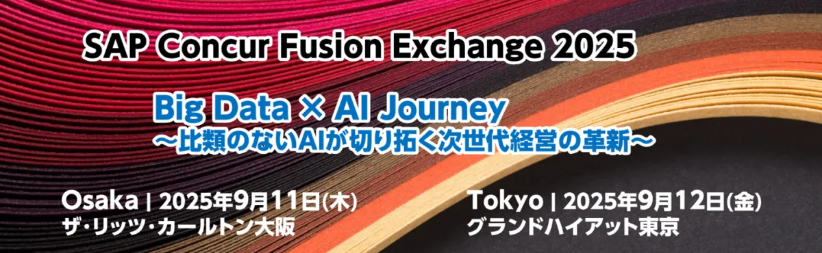 本年度の「SAP Concur Fusion Exchange 2025」は、世界最大級のバックオフィス部門に特化したイベントです。今年のテーマは「Big Data × AI Journey」で、AIとビッグデータを用いた人事業務の進化を体感できる内容になっています。ここでは、業務に実際に役立つ情報や技術を直接学ぶ絶好のチャンスでもあります。