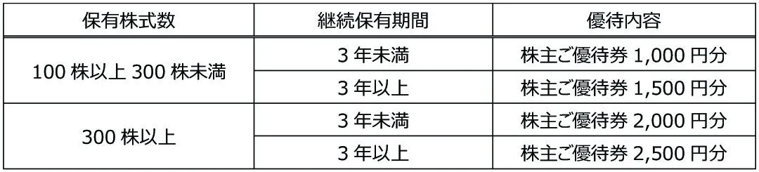 新たな優待制度では、基準日が毎年3月末日と9月末日で、年に2回実施されることに変わりありませんが、優待内容や保有期間に関する条件が見直されます。継続的な保有が求められ、株主名簿に出続ける年数や保有株式数によって優待の内容が変わってきます。