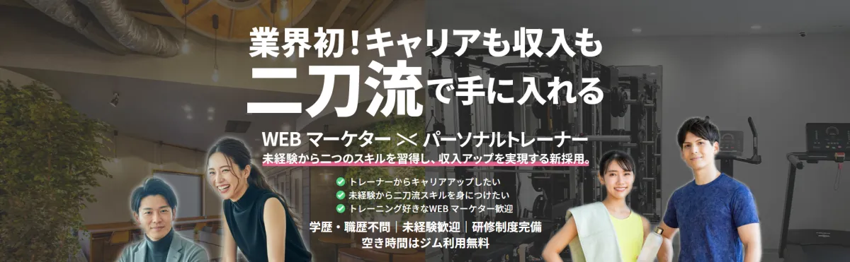 後藤ブランドの「二刀流採用」は、Webマーケターとパーソナルトレーナーという二つの職業を組み合わせたキャリアモデルです。これにより、未経験者でもWebマーケティングのスキルを習得しながら、トレーニング指導でインセンティブ収入を得ることが可能になります。