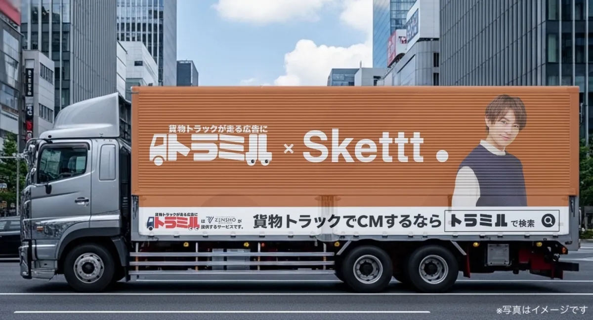 愛知県春日井市を拠点とするゼンショーホールディングス合同会社は、貨物トラック広告サービス「トラミル」とタレントの素材を広告に利用できる「Skettt(スケット)」のコラボレーションを発表しました。この新しい取り組みでは、タレントを起用したトラック広告により、街を走る広告が更に魅力的で記憶に残るものに進化します。