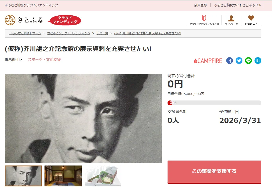 東京都北区では、2025年4月1日から「(仮称)芥川龍之介記念館の展示資料を充実させたい!」という新しいクラウドファンディングプロジェクトがスタートします。この事業は、ふるさと納税ポータルサイト「さとふる」を運営する株式会社さとふると株式会社CAMPFIREの共同企画により、地域文化の保存と発展を目的としています。