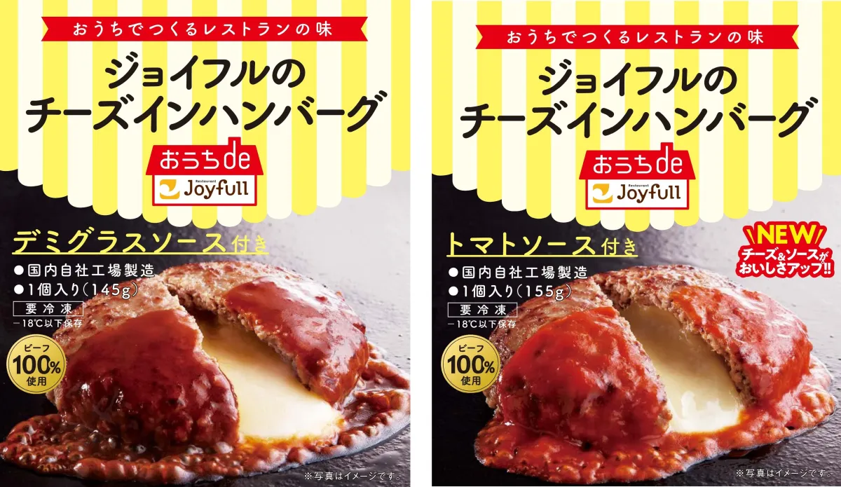 一方、リニューアル商品である「ジョイフルのチーズインハンバーグ トマトソース付き」は、酸味が程よく抑えられたトマトソースがハンバーグとの相性を格段にアップさせています。新たに加わったゴーダチーズによって、5種類のブレンドチーズがより一層濃厚な味わいをもたらします。これにより、焼きたてのハンバーグからあふれる熱々のチーズの美味しさを家庭でも楽しむことができるのです。