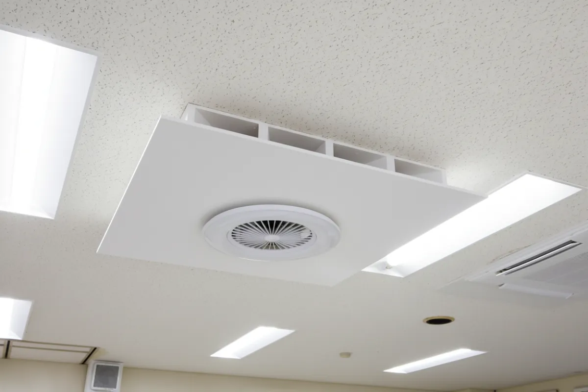 従来のシーリングファンは、天井近くの暖かい空気をうまく循環させることができず、室内壁の表面温度が下がり、結露や室温の低下を引き起こすことが課題でした。この問題を解決するために、イシカワの新しいカバーボードが必要とされるのです。1つ目の特長として、空気循環効率の向上が挙げられます。