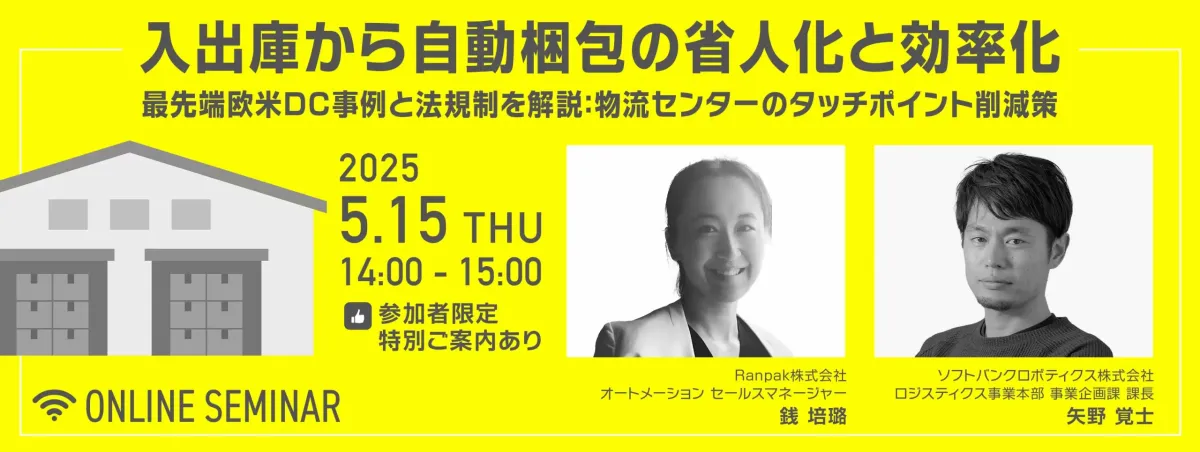 物流業界は、人口減少と人件費の上昇といった厳しい環境に直面しています。特に、労働力不足が深刻になる中で、企業は業務の効率化や省力化が急務とされています。そこで、ソフトバンクロボティクス株式会社とRanpak株式会社が共催するオンラインセミナー「入出庫から自動梱包の省人化と効率化」が2025年5月15日に開催されます。このセミナーでは、最新の物流自動化技術を学び、実際に導入するためのヒントを提供します。