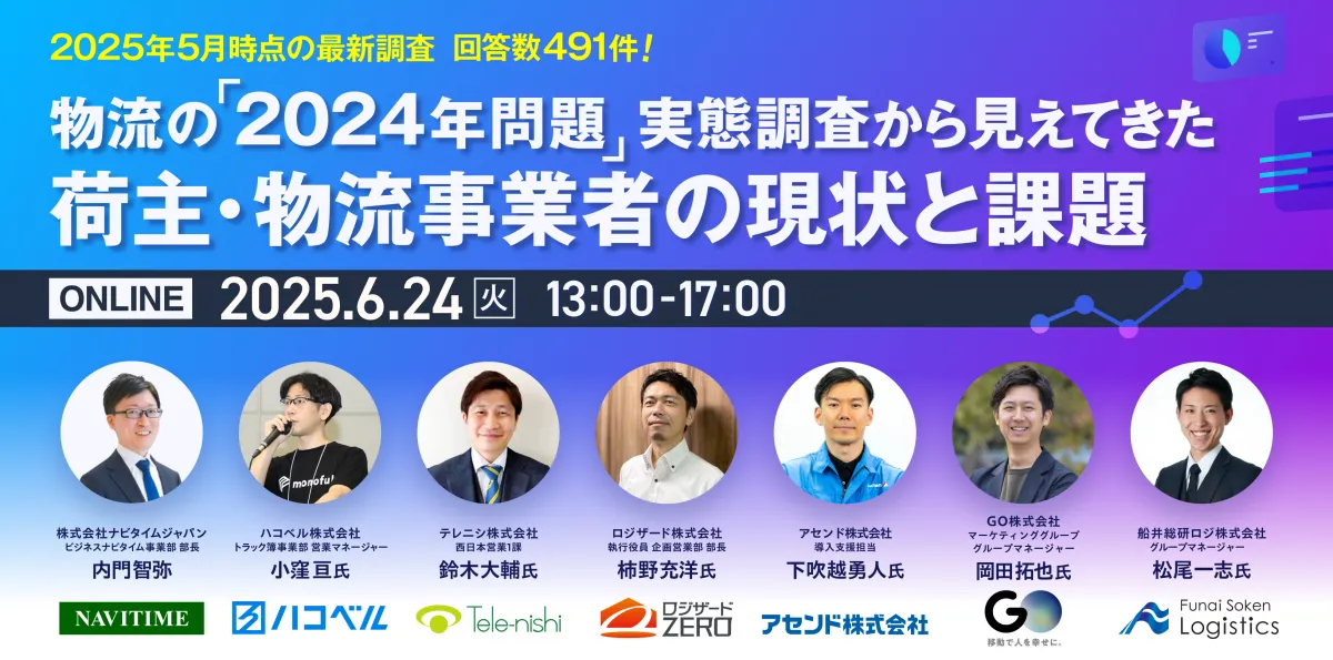 2025年6月24日(火)に、ハコベル株式会社が主催するウェビナー「物流の「2024年問題」実態調査から見えてきた荷主・物流事業者の現状と課題」に登壇します。このウェビナーでは、物流業界が直面する「2024年問題」に対する具体的な対策が議題に上がります。