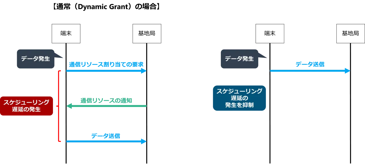 遠隔操作において、通信の遅延は大きな課題です。モバイルデータ通信の遅延やその変動が大きいために、ロボット同士の動作が同期しないことが多々あります。これが、操作の精度や安定性に悪影響を及ぼす要因です。そこで、Configured Grantを利用して、この遅延の改善を目指しました。