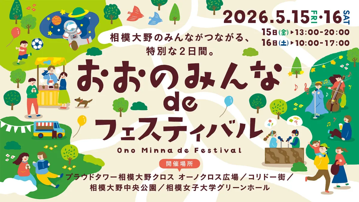 相模大野駅周辺で、新たな地域の魅力を発見する2日間のイベント「おおのみんな de フェスティバル」が2026年5月15日(金)と16日(土)に開催されます。このイベントは、「相模大野のみんな」、通称『おのみん』が主催となり、その地域の特色を一堂に集める機会です。