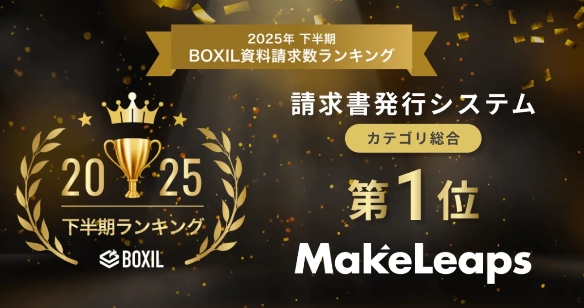 メイクリープス株式会社が提供するクラウド型請求管理サービス「MakeLeaps」が、2025年下半期のBOXIL資料請求数ランキングにおいて、請求書発行システム総合1位に選ばれました。このランキングはスマートキャンプ株式会社が運営し、ユーザーからの資料請求数を基に評価されます。