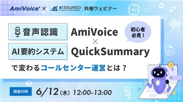 2025年6月12日(木)、株式会社アドバンスト・メディアとエーアイスクエアが共催するオンラインセミナー「初心者必見 音声認識AmiVoice×生成AI要約 QuickSummaryで変わるコールセンター運営とは?」が開催されます。このセミナーは、コールセンター業界の音声認識やAI技術の導入を検討している方々に向けて、基礎知識と実践例を提供することを目的としています。
