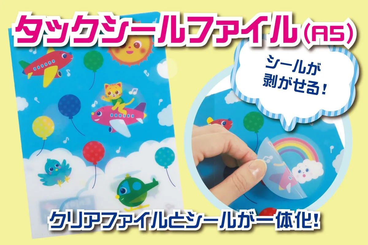 『タックシールファイル(A5)』は、クリアシール素材を使ったA5サイズのクリアファイルです。何が特別かと言うと、シールがハーフカットされており、本体から簡単にはがすことができること。これにより、一つのファイルで楽しみ方が二度あるのです!シールを剥がすと、その下に隠されたデザインが現れ、シンプルながらも楽しい体験を提供します。