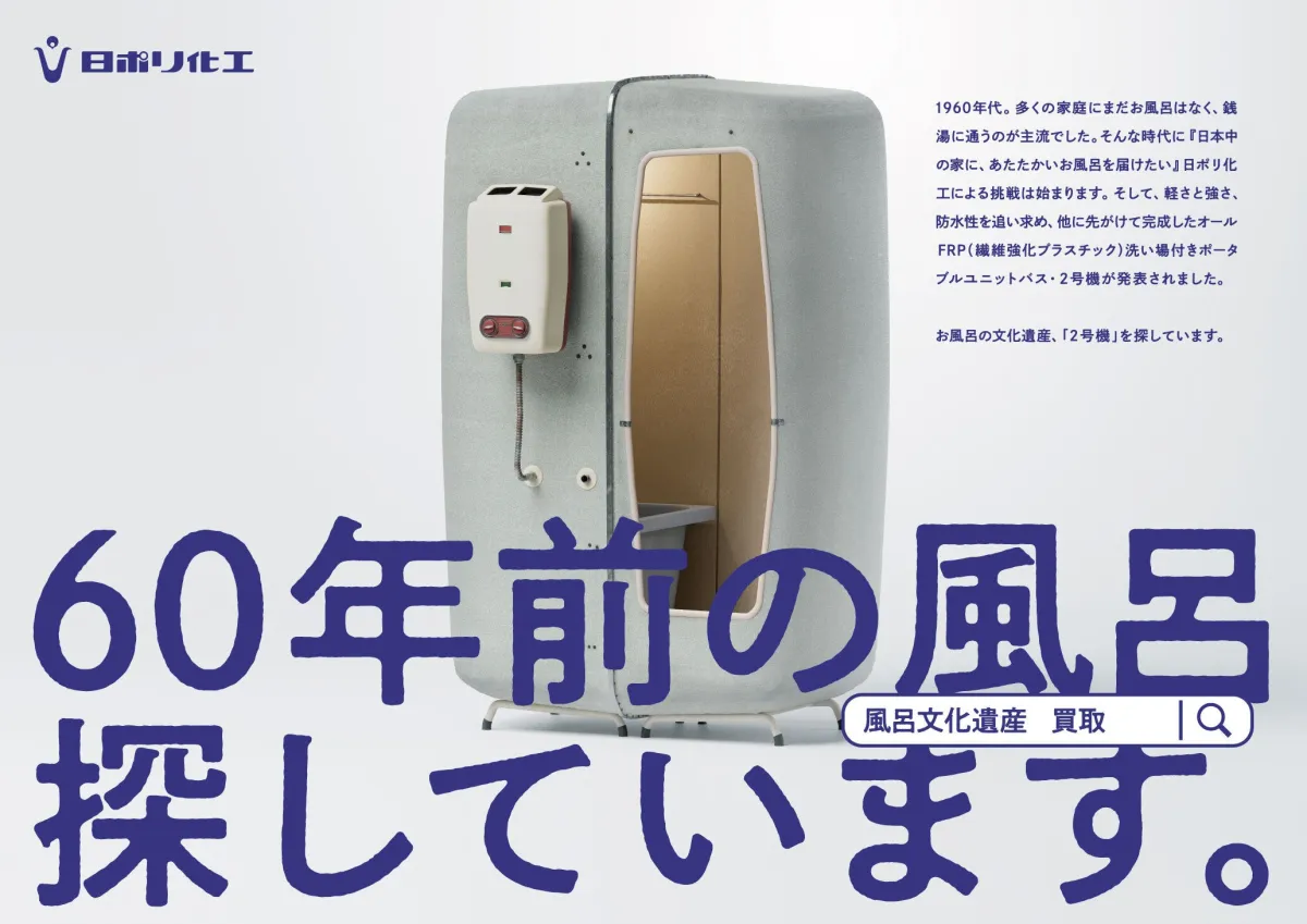 日ポリ化工は「ユニットバス・2号機」を日本の入浴文化の重要な遺産として位置づけ、その歴史を未来へ引き継ぐべく、募集中のキャンペーンを発表しました。このキャンペーンは、過去の偉大な発明品を探し出し、今なおその価値を認識している方々の情報提供を願い、実施されています。