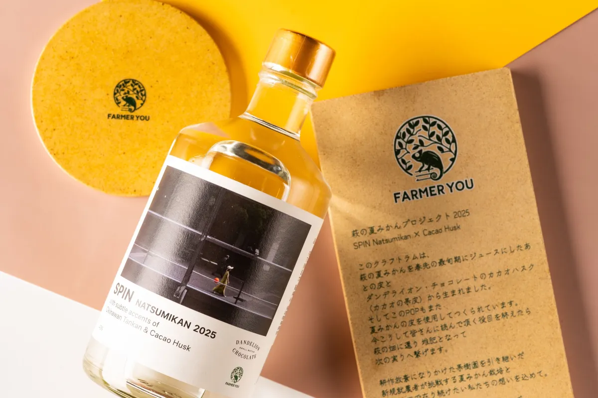 「SPIN NATSUMIKAN 2025」の開発にあたり、FARMER YOUはダンデライオン・チョコレートや瑞穂酒造と異業種とのコラボレーションを実施しました。特に注目すべきは、新しいクラフトラムに使用されるカカオハスクと夏みかんの皮です。これらは通常廃棄される運命にあるものであり、生産過程での「残り物」を活かすことで新たな価値を創造しています。