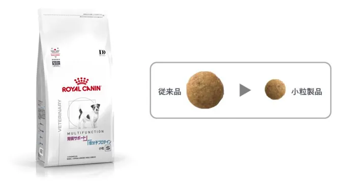 ペットの健康を考えた栄養学に基づく製品を展開しているロイヤルカナンでは、既存の腎臓サポート食の栄養バランスを維持しつつ、より小型犬に適した「小粒」のキブルサイズに進化させました。これは、日本国内において小型犬を飼育する家庭が増えていることから、そのニーズに応えたものです。
