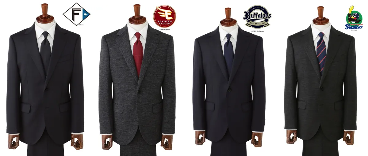 各球団の意見を反映したデザインは、監督やコーチ、選手たちが遠征や公式行事で実際に着用するスーツと同じ素材・型を使用しています。このレプリカスーツは、4月7日から洋服の青山の各球団の本拠地を中心とした店舗や公式オンラインストアで購入可能です。