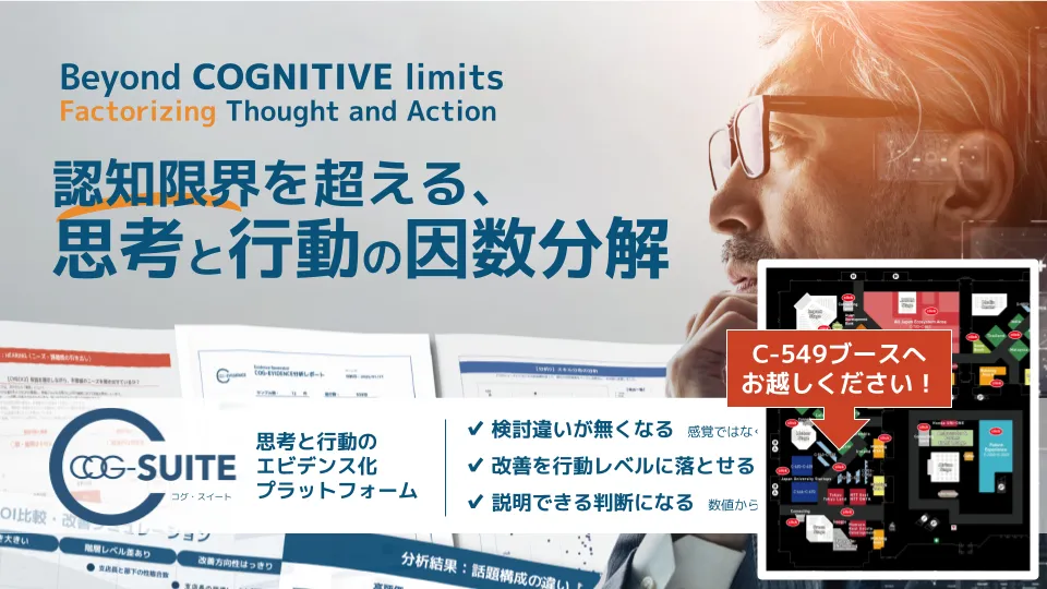 この技術は、企業が抱える意思決定や改善活動における個人の経験や暗黙知に頼る傾向を打破し、説明責任や再現性を確保することを目的としています。特に、生成AIの普及が進む現代において、一般論に依存した情報だけでは解決できない課題が多く存在しています。これに対し、コグニティは「思考と行動の因数分解」の手法を採用することで、状況に左右されない判断を可能にし、現場の課題を可視化するのです。