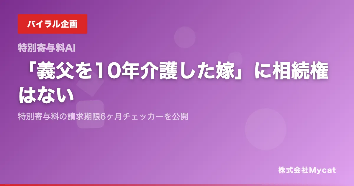 この新しい制度を活用し、介護に貢献した労力を正当に評価されるために、ぜひ「特別寄与料 請求期限6ヶ月チェッカー」を活用してみてください。