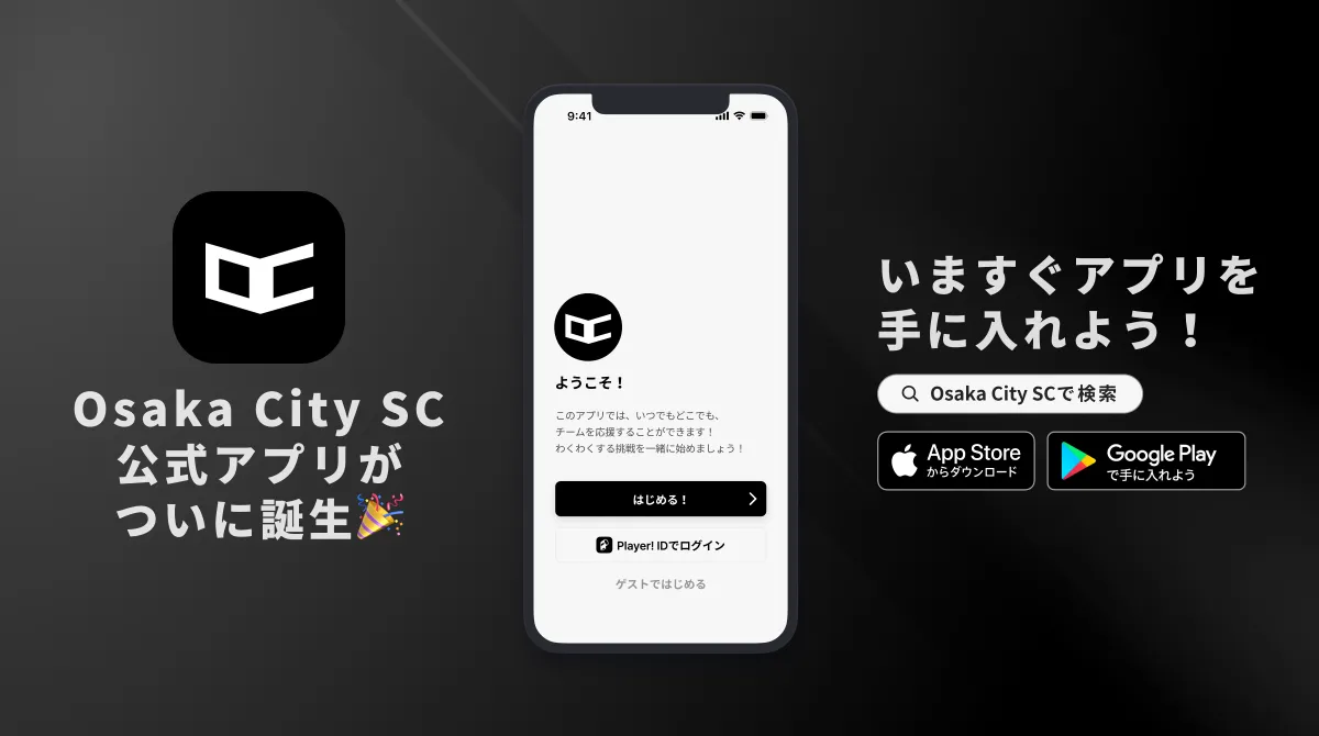 アプリは、App StoreやGoogle Playで「Osaka City SC」と検索することでダウンロードできます。以下のリンクやQRコードを使用して、今すぐ手に入れましょう!