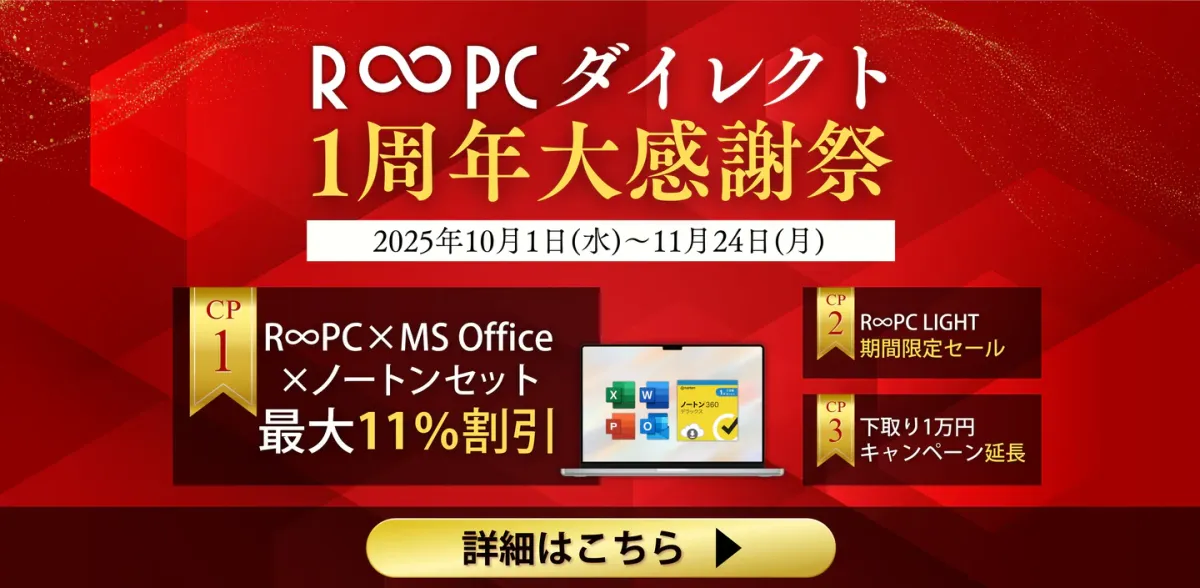 株式会社リングローが運営する『R∞PCダイレクト』が、サービス開始から1周年を迎え、この機会に特別な『1周年大感謝祭』を開催します。期間は2025年10月1日(水)から11月24日(月)までの約2ヶ月。多数の特典が用意されており、リユースPCの購入を検討している方必見のイベントです。