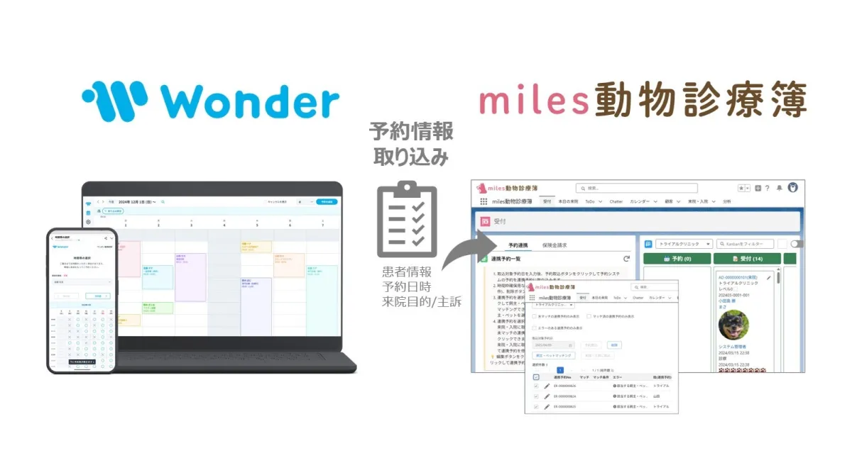 クラウド型電子カルテシステム、「miles動物診療簿」が新たに導入した連携機能が、動物病院の業務を一新しようとしています。この連携機能は、株式会社ワンダーテクノロジーズが提供する予約管理システム「Wonder」との統合によって実現されました。これにより、動物病院における予約や受付業務の効率化が期待されています。