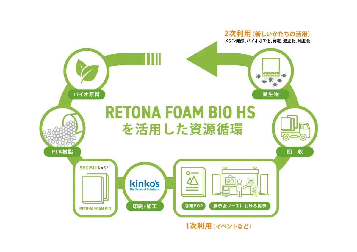 キンコーズと積水化成品は、「RETONA FOAM BIO」をイベントや商業施設、さらには販促用のディスプレイ資材として積極的に導入していく方針です。そして、使用後の回収や再資源化に焦点をあてた資源循環スキームの確立を目指し、パートナー企業との協力を強化していく考えです。