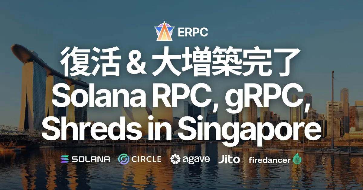 ELSOUL LABO B.V.とValidators DAOが運営するERPCは、シンガポールリージョンでのSolanaインフラを復活させ、大規模な増築を完了したと発表しました。このシンガポールの拠点は、アジア地域におけるSolanaの需要の高まりに応えるため、長期メンテナンスを経て再稼働しています。