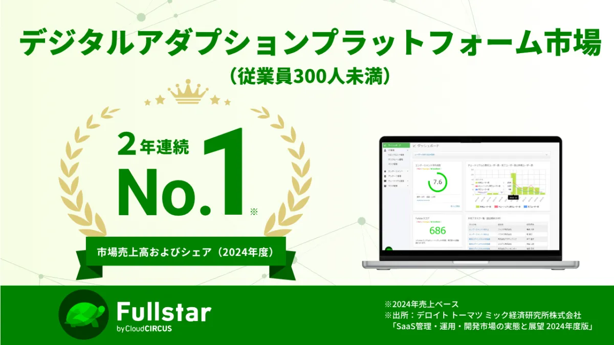 クラウドサーカス株式会社が提供するデジタルアダプションプラットフォーム(DAP)『Fullstar』が、デロイトトーマツミック経済研究所の調査によると、2024年度において従業員300人未満の企業向け市場で2年連続の市場シェア1位を獲得しました。この結果は、同レポートが発表する「SaaS管理・運用・開発市場の実態と展望 2025年度版」に記されており、特に注目すべきは売上高が前年比227%という驚異的な成長率を記録した点です。