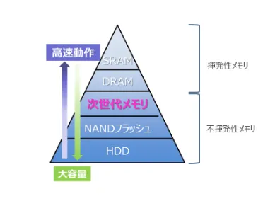 現代では、AIやIoTの急速な進展がもたらす膨大なデータ量がPCやスマートフォン、そしてデータセンターでの処理能力向上を求めています。また、エネルギー消費の抑制も重要な課題となっております。このようなニーズに応えるために、新しいメモリ技術である「次世代メモリ」が期待されています。次世代メモリは、厚さがナノメートル単位の薄膜を用いたメモリセルが3次元に配置され、より高い容量と性能を実現します。
