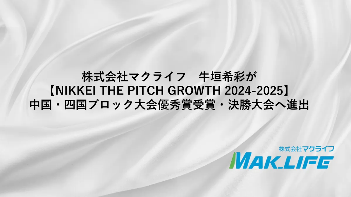 株式会社マクライフが、日本経済新聞社主催のピッチコンテスト「NIKKEI THE PITCH GROWTH 2024-2025」の中国・四国ブロック大会で優秀賞を受賞しました。この受賞により、マクライフは東京で行われる決勝大会への進出が決定しました。特に注目すべきは、マクライフが開発した革新的な天井システム「マクテン」です。