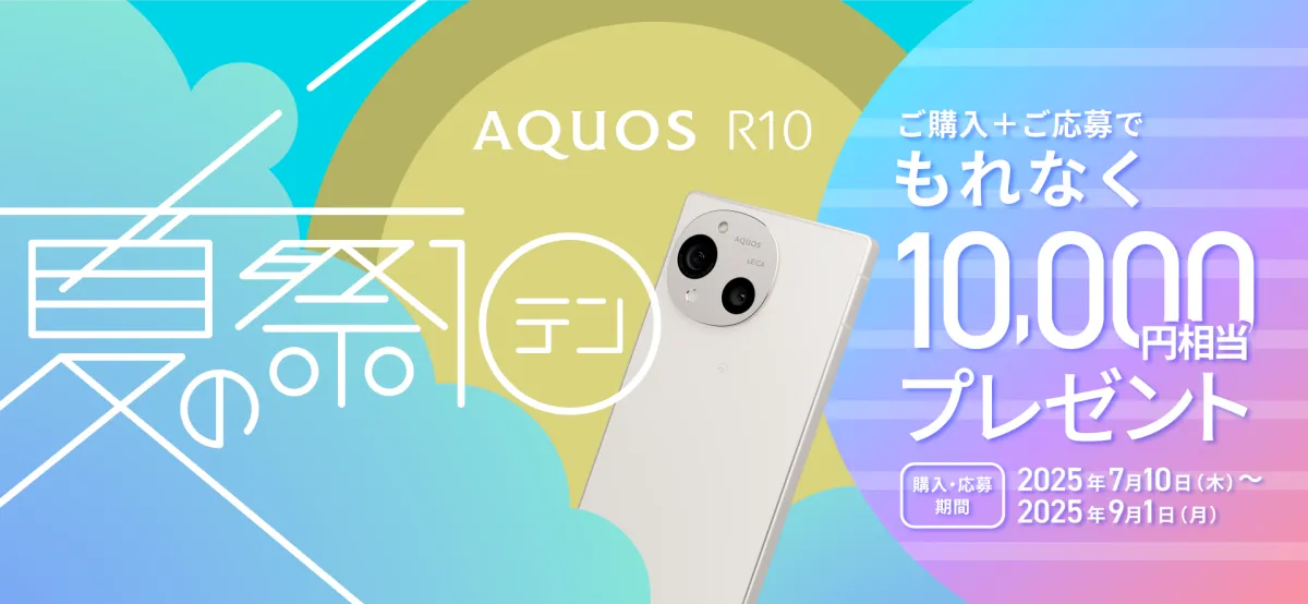 スマートフォン界のヘビーヒッター、シャープが新たに「AQUOS R10 夏の祭テン」キャンペーンを発表しました。このキャンペーンは、最新モデル「AQUOS R10」を購入したユーザーを対象とし、特典として10,000円相当のポイントをプレゼントするものです。実施期間は2025年7月10日から9月1日までとなっています。