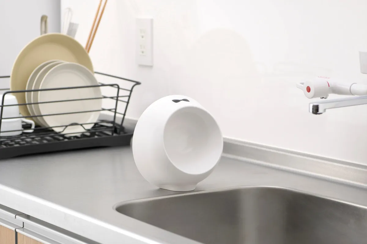 この食器は立てて乾かすことができるため、洗った後にシンクの横に簡単に置け、人用食器と分けて管理が可能です。水はけが良く、効率的に乾くことができる特徴もあります。この工夫により、飼い主も愛犬も清潔さを保ちながら使うことができます。