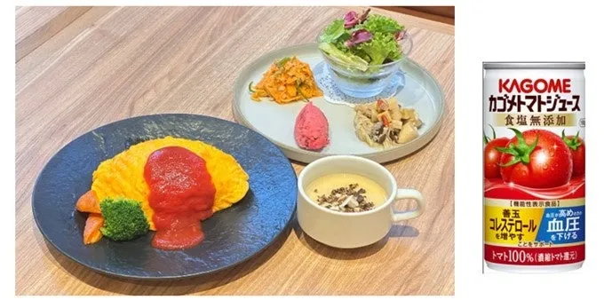この特別オムライスは、オムライス、季節のデリ3種、薬膳スープ、カゴメのトマトジュースがセットとなり、価格は1,890円(税込)です。野菜の色素成分にこだわり、目にも優しいビジュアルが楽しめます。にんじんのβ-カロテンやブロッコリーのルテインなど、栄養価にも配慮したメニューです。